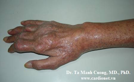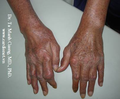 Hạt Tophy ở bàn ngón tay bệnh nhân Goutte