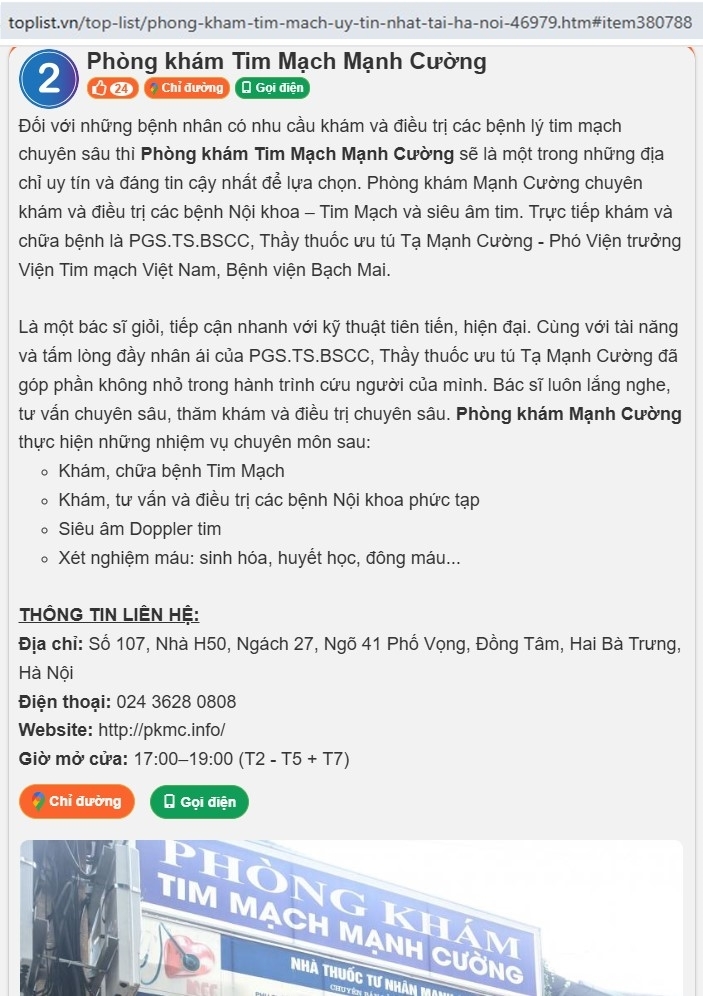 Giới thiệu Phòng khám Tim Mạch Mạnh Cường